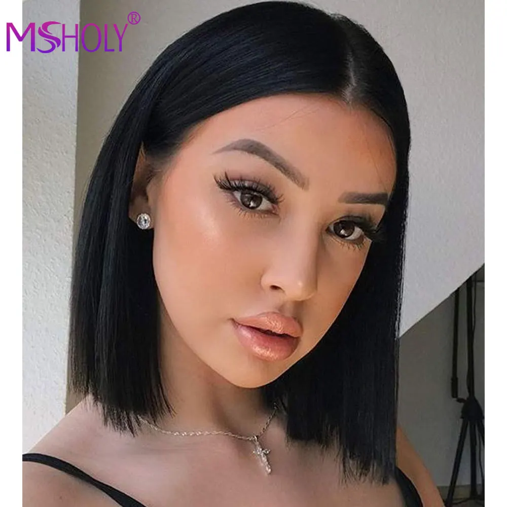 Name: Msholy-Peluca de cabello sintético para mujer, pelo corto recto de 12 pulgadas, color marrón ombré, Natural, de alta temperatura, para fiesta diaria