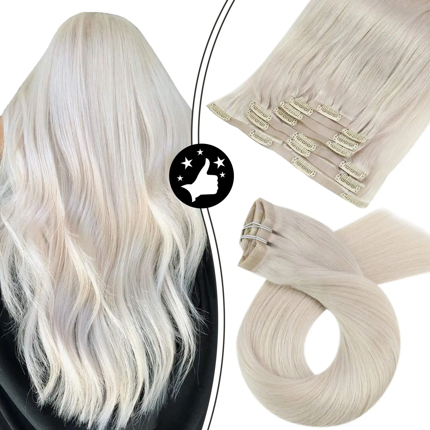 Name: Extensiones de cabello humano con Clip sin costuras, pelo Real brasileño, blanco, Rubio, 7 Uds., Remy, máquina, Clip Invisible
