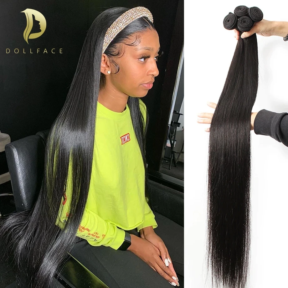 Mejor Extensiones de cabello natural de DollFacehair Wig Store por Recto mechones hueso recto 100% extensiones de cabello humano mechones 28 30 cabello virgen pulgadas 3 4 mechones brasileño tejer extensiones de cabello humano