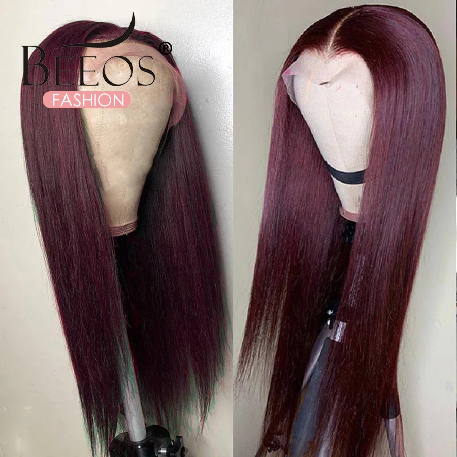 Mejor Pelucas de encaje de BEEOSFASHION Store por Pelo recto 13X6 peluca con malla frontal pelucas de cabello humano 99J Borgoña Pre-arrancado 180% Remy pelo profundo parte pelucas para mujeres brasileño