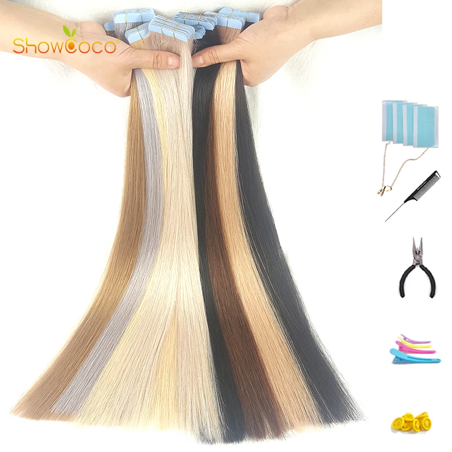 Name: ShowCoco cinta rubia en extensión, 100% cabello humano Natural cinta adhesiva Remy hecha a máquina 20/40 uds, cinta en cabello humano